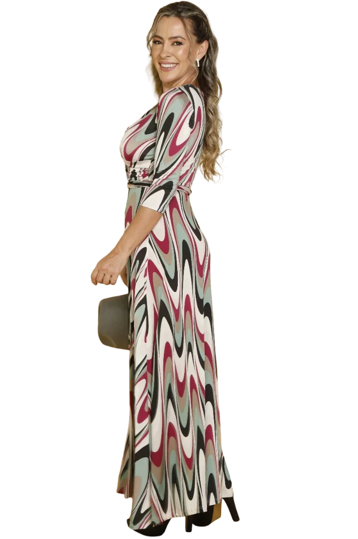 DETALLE | Vestido largo con escote, cuenta con un diseño ceñido que resalta visualmente la figura. |