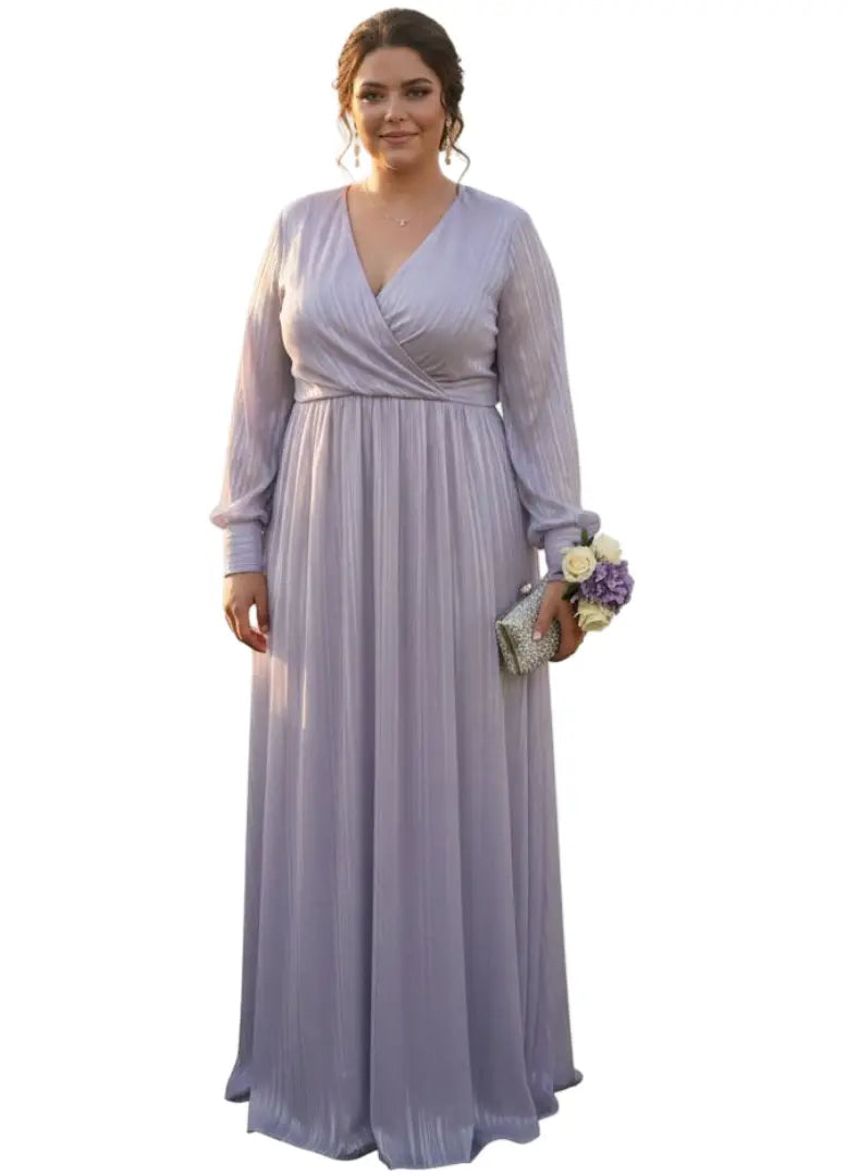 Vestido largo plus color lila para matrimonio