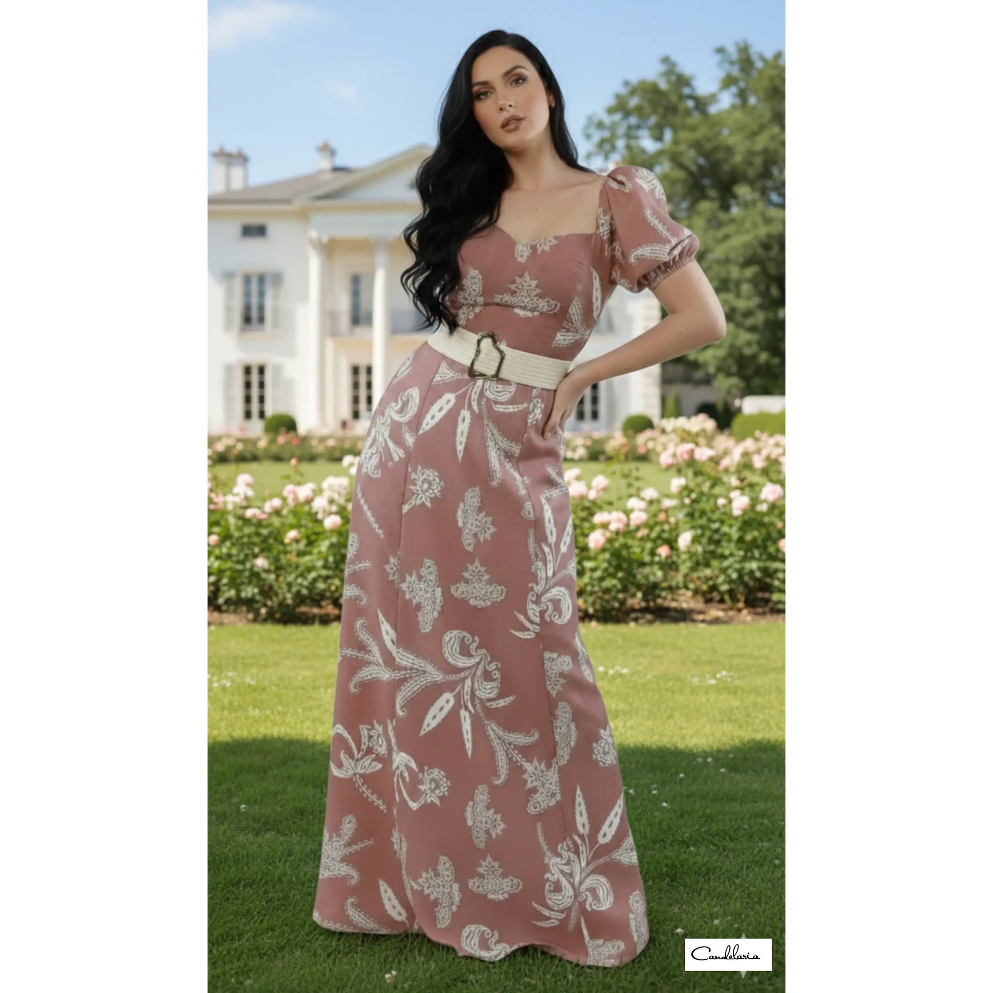¡La pinta "soñada" para verte como una princesa moderna! Este vestido paisley es una belleza total; el color palo de rosa es súper tierno y el estampado de amebas le da un aire muy fino. Las manguitas abullonadas y el cinturón de rafia son los detalles que te hacen quedar muy linda y con un estilo impecable para cualquier evento especial.